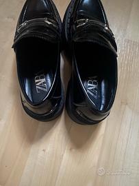 Mocassino donna zara nero suola track con fibbia metallica come nuovo spedizione veloce