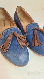 Vendo Mocassini estivi nuovi da donna SOLDINI mod. 20103 colore jeans con nappine marroni leggermente scolorite dal sole taglia 36
