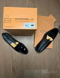 mocassino di Tod’s in vernice nera lucido taglia 38,5 da donna completo con il suo corredo.