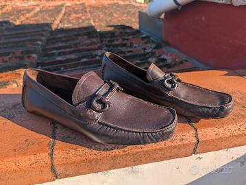Come da titolo vendo mocassino uomo Ferragamo Driver ornamento Gancini n. 44. I mocassini sono stati usati 3/4 volte in occasione di eventi, hanno segni di usura.