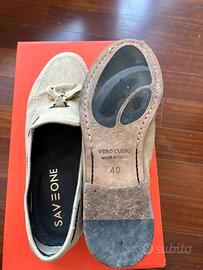 Mocassino Saveone made in italy scamosciato con nappine .