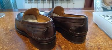 Vendo mocassino uomo in vero cuoio, colore marrone, cucito a mano, fondo in gomma ,nuovi mai calzati, misura 41.Molto belli. Luigi