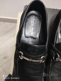 mocassino in pelle scamosciato Andrea Morelli colore nero con fibbia in acciaio in buone condizioni