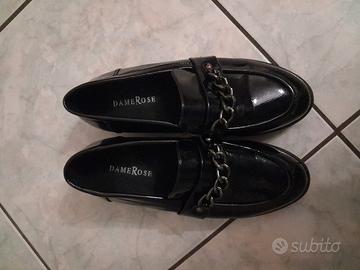 Mocassino nero mai utilizzato, ancora come nuovo. Presenta un dettaglio di catena sulla parte anteriore. Taglia 38