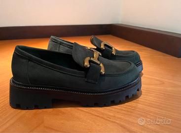 Mocassino Primadonna Verde bosco con fibia dorata, usato poco numero 36. Solo spedizione