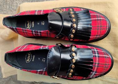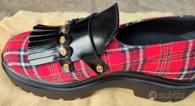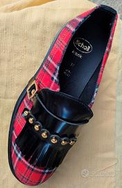 Mocassino Scholl Iconic originale da donna scozzese arricchita da un particolare morsetto sul passante.e una frangia vistosa il soletto è in pelle. modello versatile e dinamico ideale per completare moltissimi outfit. Particolare nel suo stile prodotto introvabile. Misura 37 Viene venduto senza scatola ORIGINALE ma il prodotto e nuovo mai indossato . Come si nota nelle foto .