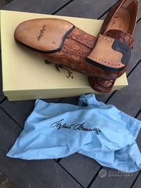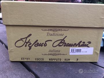 Mocassino cucito a mano da uomo Marca Stefano Branchini distribuita da Mauro Volponi noto negozio di Forte dei Marmi. Taglia 7 ma considerate che calzano un 42. Lo vendo perché regalo non gradito. Assimilabile a scarpe marca Santoni, Moma, Balenciaga, Velasca, Pantanetti ecc.