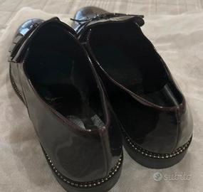 Mocassino verniciato stringato con dettaglio nappe è piccolo fiocco. Col bordeaux noir. Mis 37