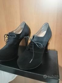 Mocassino stringato, numero 39,tacco 12 con zeppa anteriore, usato solo una volta in camoscio nero