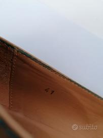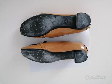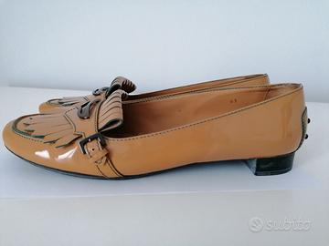 MOCASSINO TODS DONNA CON FRANGE VERNICE CIPRIA E CUCITURE PETROLIO TAGLIA 41 USATE POCO