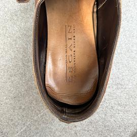 Mocassini da uomo in pelle marrone, fatte a mano. Brand: Regain. Taglia 9 1/2, corrispondente a una 43.5. Ottime condizioni e usate molto poco, ha solo due piccoli difetti mostrati in foto.