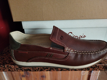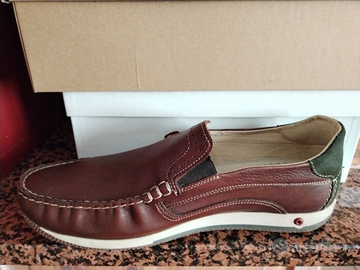 Tomaia cucita a mano in pregiata pelle nabuk di prima qualità. Sistema di ventilazione che la rende leggerissima, molto elastica per una calzata agevole.
