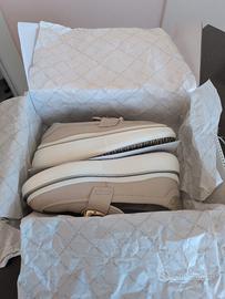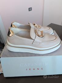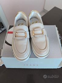 Vendo queste bellissime scarpe moccasini di Cafenoir, vera pelle colore beige chiaro con fibbietta dorato numero 38. L'ho usata solo 3 o 4 volte le scarpe sono nuove. L'ho vendo perché ho sbagliato prendere il numero 38 dovevo prendere numero più grande. Acquistato da Zalando l'ho pagata originale €119,90 c'è scritto nella scatola originale. Vendo prezzo €95.