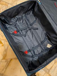 Modello in vendita T65: 65,5 x 42,5 x 25 cm (includono ruote, maniglie, tasche laterali, etc.) volume 67,4L peso 2,89 kg