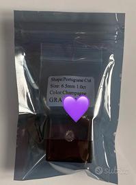 Bellissima Pietra di Moissanite colore champagne con taglio Portoghese/100 sfaccettature 1 CT Certificazione GRA Grado di colore D Grado di chiarezza VVS1 Grado di taglio Eccellente Pulimentatura Eccellente Simmetria Eccellente Fluorescenza Nulla