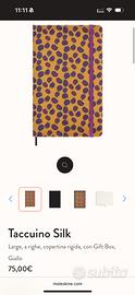 Vendo per inutilizzo Taccuino Moleskine Silk Collection, nuovo, impacchettato con scatola e pellicola attorno. Dimensioni Notebook 13 x 21, a righe. Prezzo originale Moleskine 75 euro, come da foto.