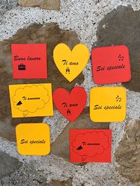 Creo anche bigliettini colorati con frasi come “Ti amo”, “Buon lavoro” o “Sei speciale”.