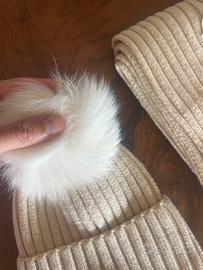 Colore bianco avorio Composizione cappello: - 70% lana - 30% pelo di coniglio Composizione sciarpa: - 100% lana