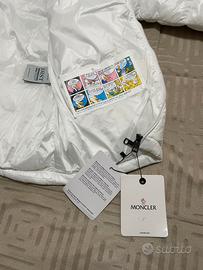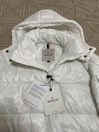 Piumino Moncler da uomo in colore bianco. Presenta un design trapuntato e cappuccio. - Logo Moncler sulla manica. - Tasche laterali con zip. - Chiusura frontale con zip. Ha l’NFC, Spedizione entro 24h, prezzo leggermente trattabile