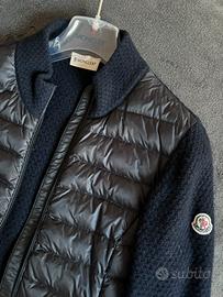 Bellissimo cardigan Moncler imbottito, taglia 12 anni. - Cardigan con zip. - Imbottitura in piumino. - Maniche in lana lavorata a maglia. - Colore blu