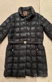 Moncler giubbotto piumino donna taglia 48 (taglia Moncler 4), colore nero, modello lungo, con cintura. Usato ma in buone condizioni. Lavato in lavasecco.