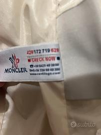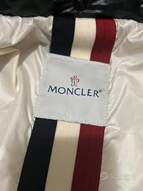 giubbotto moncler mai usato senza cartellino con numero di telefono sull'etichetta per verificarne l'autenticità