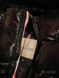 Vendo piumino corto con cappuccio Montbeliard Moncler taglia M Realizzato in nylon laqué Fodera in nylon laqué Modello imbottito Cappuccio rimovibile e regolabile Chiusura con zip Tasche con zip Tasca sul petto con bottone automatico Polsi regolabili Fondo del capo con coulisse