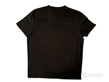 T-shirt classica di Moncler, da uomo. Di colore nero, in tessuto jersey di cotone. Logo a spilla sulla manica sinistra. Taglia XXL, vestibilita regolare. Lunghezza 74cm, Spalle 45cm, maniche 20cm, Petto 56cm. Articolo nuovo, mai usato o indossato. Consegnato con etichetta. Nessuna fattura, nessun imballaggio.