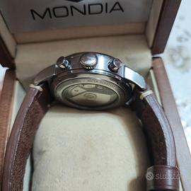 CINTURNO IN PELLE. ANNO DI PRODUZIONE 1990, CON SCATOLA. CORONA ORIGINALE GHIERA LISCIA ,TASTI A POMPA LANCETTE ORIGINALI L’OROLOGIO PRESENTA SEGNI DI USURA LIEVI, DIREI CONDIZIONI OTTIME. OROLOGIO REVISIONATO.