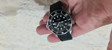 Originale orologio Mondia Submariner Professional,Cassa 44m e bracciale acciaio,doppio cinturino in gomma,movimento automatico Swiss Made ,subacqueo 200 mt.Completo di tutto il suo corredo presenti ancora le plastiche