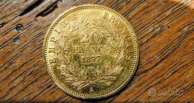 Moneta da 20 franchi d'oro 21 carati di Napoleone anno 1857