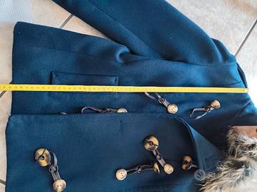 Giacchino in caldo panno con collo a pelliccia sintetico staccabile , corto in vita . Chiusura in doppio petto stile montgomery . Come nuovo Taglia IT 46 EU 42