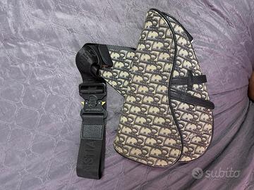 Dettagli: chiusura con patta, tracolla regolabile con scritta “Christian Dior”, capiente e comoda per uso quotidiano o outfit streetwear.