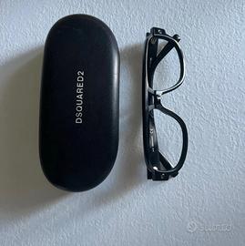 Montatura per occhiali DSQUARED2 originale, colore nero con dettagli gialli.