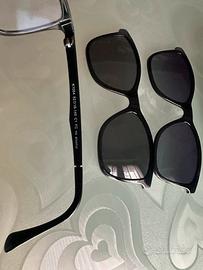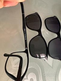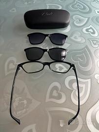 Montatura Clark by Trevi Coliseum modello K1054 con due clip da sole. Buone condizioni ma non la vedo adatta al mio viso. Le clip si applicano facilmente e permettono di ottenere occhiali da sole in un attimo. Lenti graduate per la miopia da sostituire in base alle proprie esigenze. Disponibile a spedizione rapida. Se acquistate prima delle 14:00, cercherò di inviare il giorno stesso.