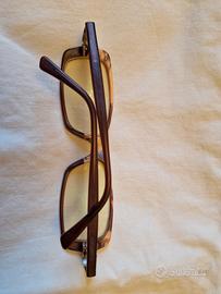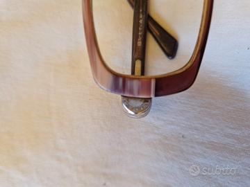 Montatura occhiali da vista Bulgari con lenti (da rimuovere), logo visibile ai lati di ogni lente e all'internodelle stecche con relativo numero di serie.