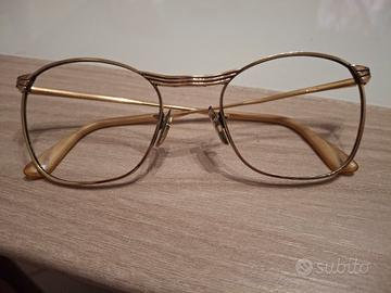 Montatura occhiali da vista vintage marca Opera tenuti bene, colore oro, naselli anneriti da sostituire, rivestimento stanghetta interna annerito, senza lenti