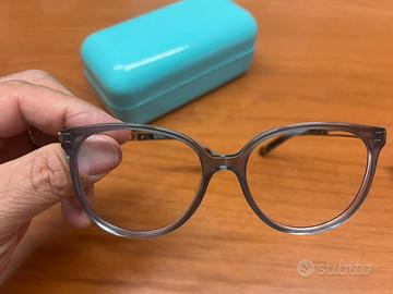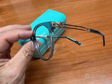 Vendo per inutilizzo , originale , nuova montatura occhiali da vista e non (bisogna ancora metterci le lenti), marca Tiffany & co. Modello TF 2152 (8218) colore azzurrino /verdino/grigio con aste color bronzo oro .