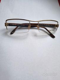 Montatura occhiali Tom Ford, design elegante e minimale con struttura sottile in metallo dorato ed aste brown. Linea raffinata, perfetta per uso quotidiano o lente personalizzata. Misure: 55 □ 18 – Aste 135mm Made in Italy, modello TF 5093, Forma: rettangolare Condizioni: rimanenze di magazzino, presentano dei segni sulle lenti demo che non influiscono in nessun modo al montaggio di eventuali lenti da sole o da vista! 📦 Spedizione in 24h 💭 Dubbi? Scrivimi! 🧾 Attività professionale