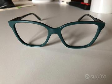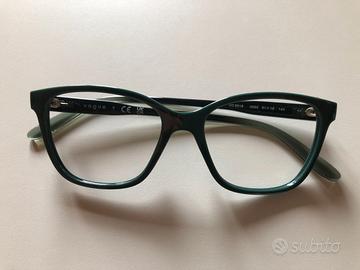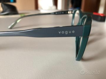 Montatura occhiali Vogue originali colore verde e stanghette grigie. Possibilità di montaggio lenti da vista o da sole. Custodia originale presente. Misure: 51-16-140