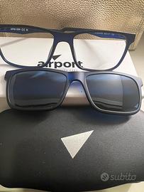 Vendo montatura per occhiali da vista +clip magnetico per il sole (come da. Foto). Montatura di marca AIRPORT, vendo per errato acquisto, pari al nuovo .
