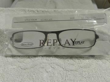 Vendo montatura per occhiali da vista, nuovi marca Replay. Colore metallo scuro e stecche nere con piccola riga grigia. Misura 52 / 18. Consegna a mano, no spedizione.