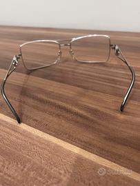 Montatura per Occhiali da vista o da Sole Valentino Vintage con montatura in metallo color argento, usato ma ancora in perfette condizioni dal design moderno ed elegante. Aste traforate con iconica V Valentino come dettaglio distintivo. Struttura leggera e confortevole, ideale per uso quotidiano. Made in Italy, qualità e stile firmati Valentino. Sprovvisti di lenti e di Custodia
