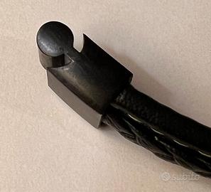 Elegante bracciale originale Montblanc con chiusura a incastro e magnetica di colore nero in pelle intrecciara e impunturata con filo bianco. Misura 225 mm di lunghezza esterna x 12 mm di larghezza ( 200mm lunghezza interna). Pressoché nuovo, nessun segno d’usura, veramente perfetto.