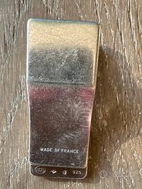 Elegante fermacravatta Montblanc in argento 925, produzione Made in France, con punzoni visibili e meccanismo a molla funzionante.