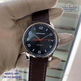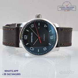 Montblanc Timewalker 42MM acciaio, anno di produzione 2021, ghiera liscia acciaio, vetro zaffiro antiriflesso, quadrante colore nero con indici arabi e sfere al LumiNova, movimento meccanico a carica automatica, cinturino in pelle di vitello colore marrone con fibbia in acciaio originale Montblanc.