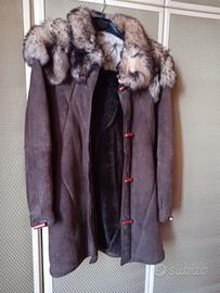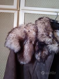 montone marrone giacca, con collo in pelliccia di volpe, tg 42, vendo per inutilizzo