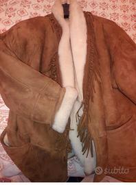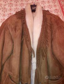 MONTONE DONNA DI MORBIDA VERA PELLE COLOR CUOIO CON FRANGE