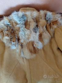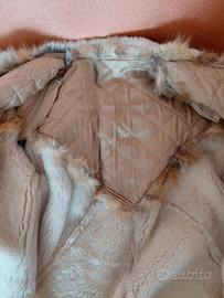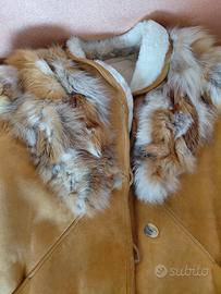 montone donna con pellame color miele con inserti in pelliccia sulle spalle
