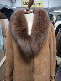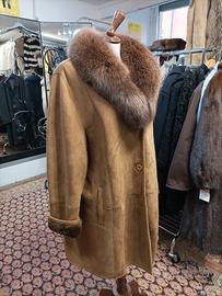 Elegante Montone Scamosciato, Colore Marrone Chiaro, tg 48/50, Perfettamente Rivestito internamente di Caldo e Morbido Montone Naturale Entro Fino, ideale da indossare a Primavera! Non Pesante e Come Nuovo con Ampio e Folto Collo in Vera Volpe Naturale Marrone Classico, Polsi Risvoltati, Tasche Laterali e Chiusura con Bottoni sul Davanti. Occasione!